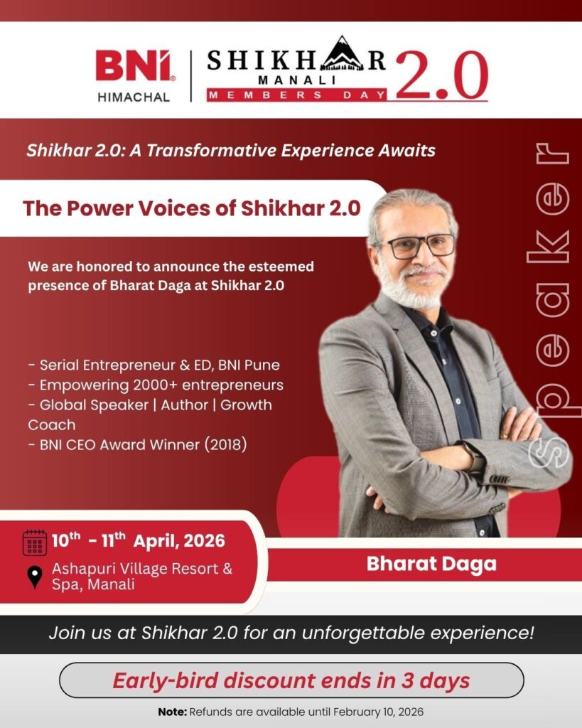 BNI Himachal was launched in March 2023. Currently, it is present in five cities of Himachal and coming soon to 2 more cities. There are seven chapters in operation/formation with approximately 200+ members who have done a business of hundred crore plus since inception.